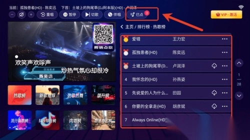 2. 随后进入点歌界面,点击自己感兴趣的歌曲,就能添加到“已点”列表里。