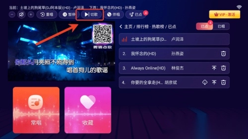 3. 只要点击“已点”,就能进入K歌页面;而点击“切歌”,则可实现歌曲的切换。