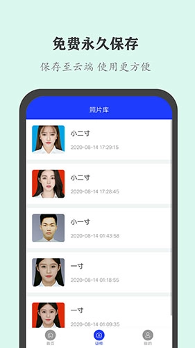 【云端保存】证件照可以免费且永久性的保存到云端以供下次使用