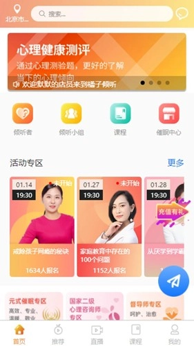 橘子倾听的专业课程涵盖直播课与录播课两大类型。其中,录播课细分为大咖课、成长课、专业课、分享课以及精品课,这些课程包含各类心理学方向的内容。而直播课分为限时公益直播课程与专业封闭学习课程,针对不同需求的心理学爱好者,提供诸如NLP技术、意象对话、焦点解决、曼陀罗绘画等多种不同课程以及多阶段的内容学习。