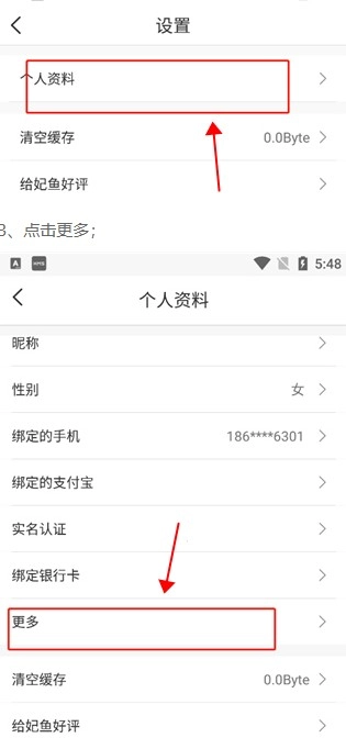 2. 于设置里挑选“个人资料”,寻得“更多”选项后点击进入。