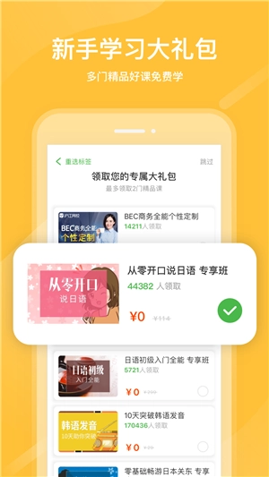 1. 平台会向新人赠送学习大礼包,里面含有课程的各类优惠券。