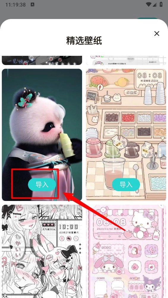 6. 接着通过滑动操作,挑选出自己喜欢的壁纸,随后点击“导入”按钮。