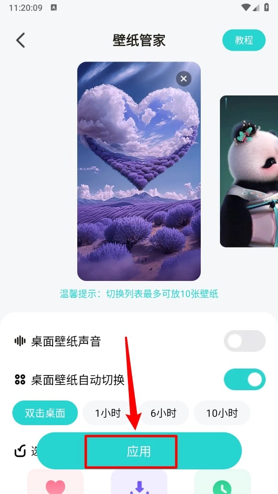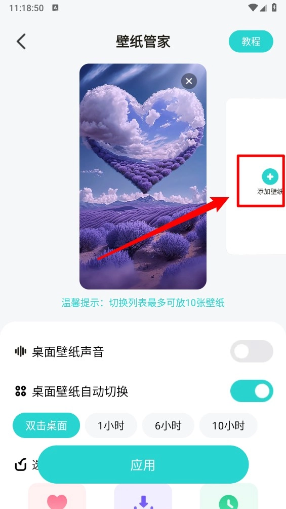 5. 进入之后,点击添加你想要切换的壁纸。需留意,切换列表最多能放置10张壁纸。
