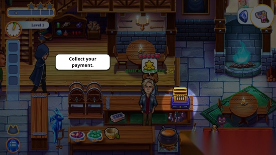 4. 你的职责在于服务好顾客,对顾客提出的需求予以满足。点击顾客所需物品并递交给他们,随后在收银台点击完成付款操作就行。