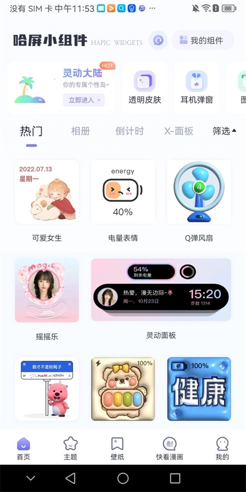 哈屏小组件,堪称一款极为实用的手机桌面美化神器。它为用户精心准备了海量手机壁纸与组件,主题丰富多样,像简约风、卡通范、可爱系、二次元、炫酷格调、明星元素、豪车主题等,应有尽有。用户在软件里挑选心仪的壁纸或组件后,一键就能应用。不仅如此,这款软件的界面设计简约又时尚,能助力用户更迅速地浏览并找到好看的壁纸。