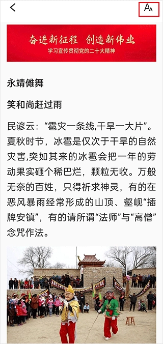 在文章阅读界面,同样可以点击右上方的字体按钮进行设置。