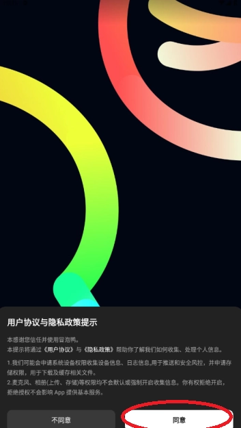 2、打开软件,然后同意隐私政策。