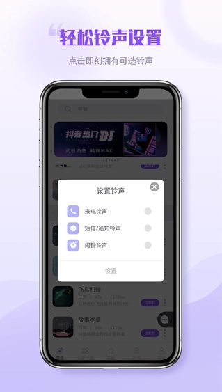 3、无论是手机铃声、来电铃声还是短信闹钟,都为您精心准备,让您不会错过任何重要提示。