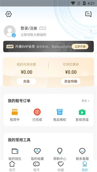 登录虚贝租号的,进入“个人中心”界面。