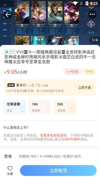 2、请前往主页或者租帐号页面,在图示的筛选栏里选中“租赁”选项,接着依据您对帐号的要求挑选其他筛选条件,筛选栏下方便会呈现相应的筛选结果。点击即可打开详细信息页面,查看商品的具体信息。当您找到心仪的帐号后,可在商品展示栏该帐号商品信息的后方,选择“立即租赁/预约”,也能在商品详细信息页进行“立即租赁/预约”操作。