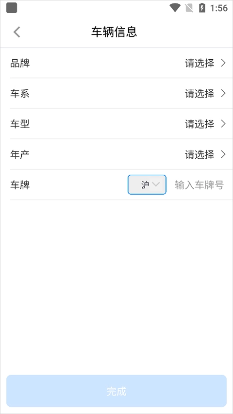 3、随后在新开的页面里,按顺序挑选车辆品牌、车系、车型、车辆年产时间,并且选择车牌号省份简称,录入车牌号。