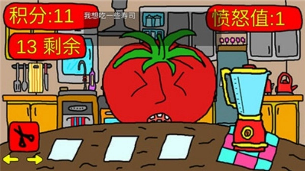 2、左上角可查看积分,右上角可查看番茄先生的怒气值。