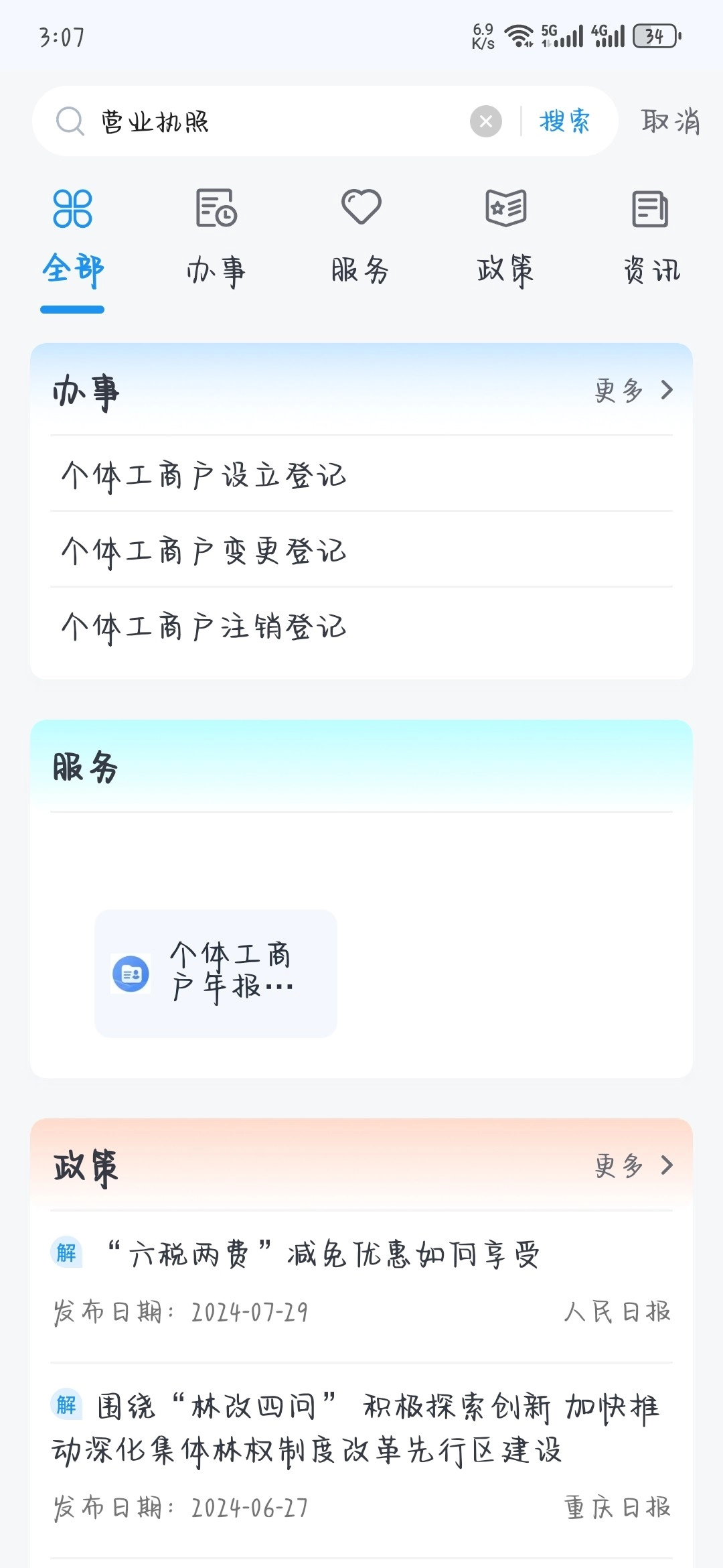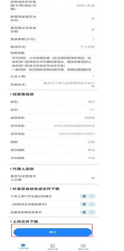 渝快办(个人)办理营业执照