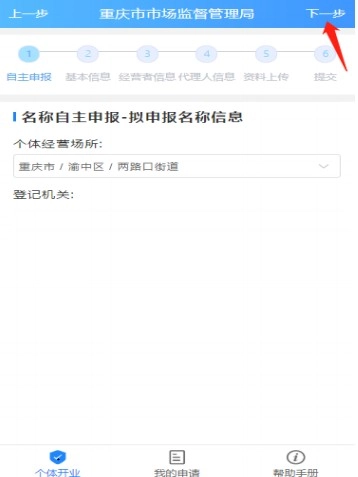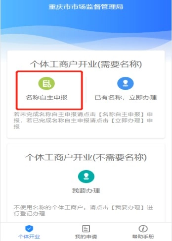 以需要名称的个体工商户为例。点击【名称自主申报】