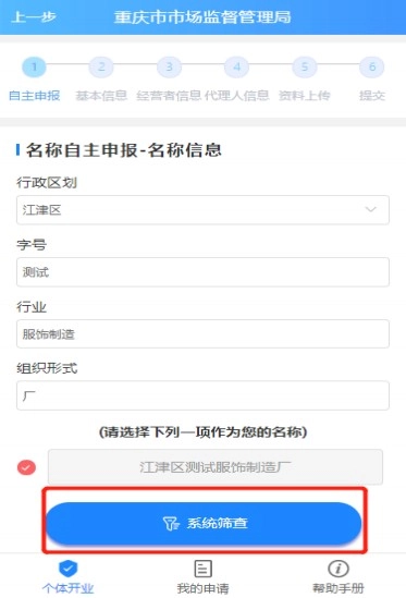 录入名称信息,选择企业名称,点击【系统筛查】;
