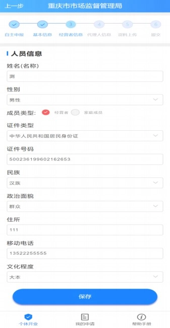 录入经营者信息,确认无误后点击【保存】,然后点下一步;