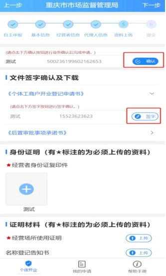 先完成实名认证与文件签字,接着上传身份证明及证明材料,随后点击下一步进入提交界面。在该界面核对信息无误后,点击【提交】,之后等待审批就行。