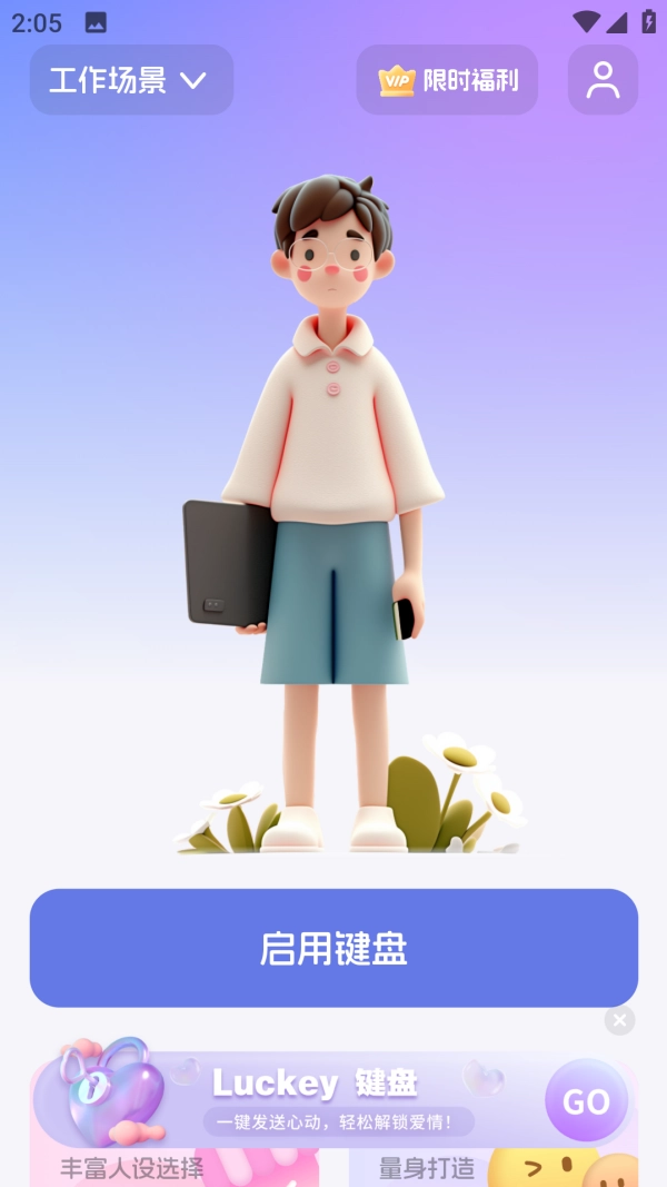 Luckey键盘是一款极为专业且值得推荐的手机专业聊天输入法。该平台能为你带来诸多便利,拥有海量丰富的聊天话术,无论是工作场景还是恋爱场景都适用。用户还能在软件中打造专属自己的人设,同时,这里有大量丰富的GIF表情包和贴纸可供免费使用。要是开启会员,更会解锁丰富多样的功能呢!
