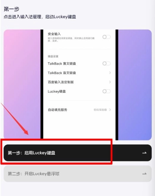 在设备设置中开启Luckey键盘,确保其正常运行。