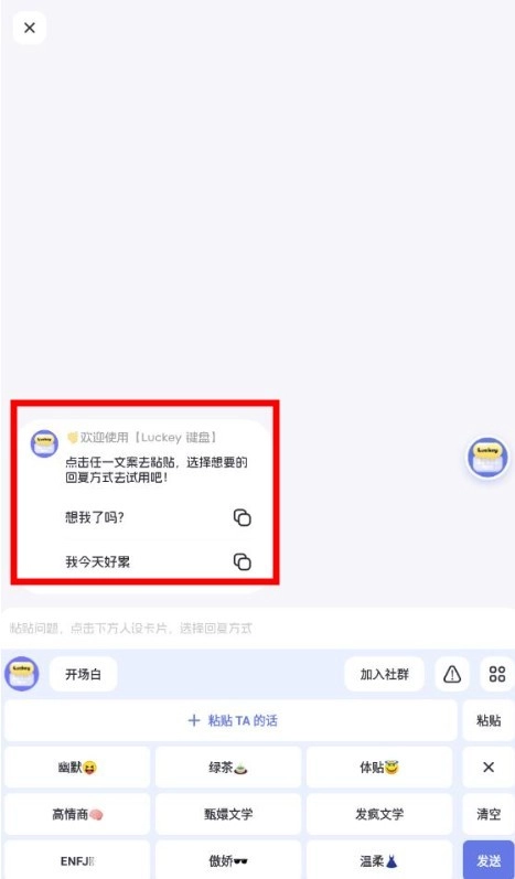 5、不管是初次添加时的寒暄,亦或是深入交流中的对话,Luckey键盘都可助力于你,使你迅速赢得对方好感,收获甜蜜爱情。