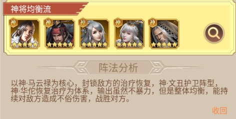 以神·马云禄作为核心要点,对敌方的治疗恢复进行封锁。同时,搭配神·文丑的护卫阵型以及神·华佗的恢复治疗,以此构建起一套体系。在这套体系下,虽然输出并非那种极具爆发力的暴力型,但整体表现较为均衡,能够持续不断地对敌方造成相当可观的伤害,进而实现战胜对方的目标。