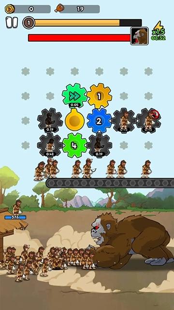 签到即送钻石,看广告免费获取,资源充足管够,让你轻松感受进化带来的畅快!兵种齿轮玩法:转动一圈就能产出一个士兵,从石器时代迈向铁器时代,战力瞬间大幅提升!
