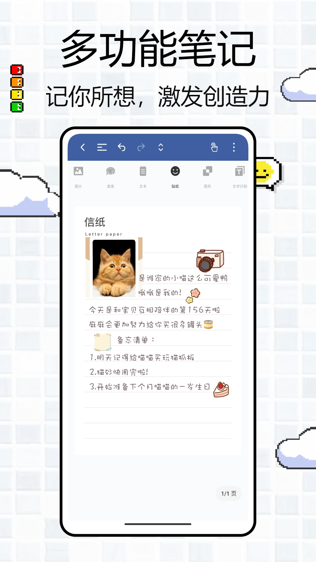 支持插入与编辑文本、图片,还能更改字体及字体颜色。