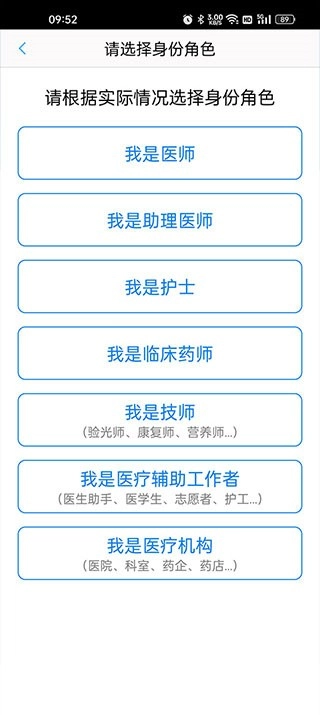 3、随后在“请选择身份角色”页面,依据自身实际状况选择【角色】。