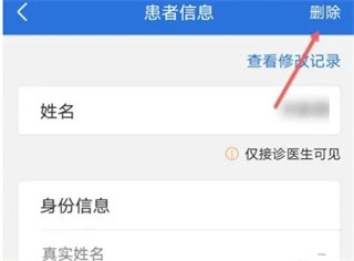 3、最后点击进入患者信息页面,在页面右上角直接点击【删除】即可。