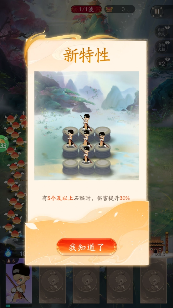 当石猴数量达到5个及以上时,伤害会提升30% 。