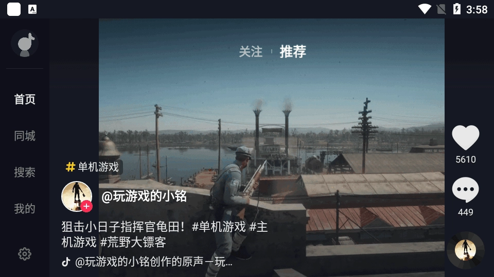 在应用首页,用户既能浏览推荐的视频内容,还能通过点击观看、评论、点赞等方式进行互动。此外,用户可依据自身兴趣展开搜索,也能查看同城相关内容。