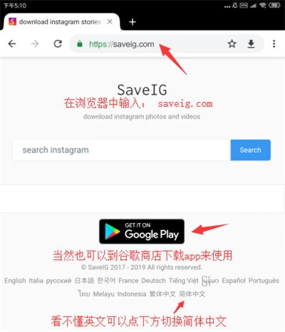 在浏览器中输入 saveig.com