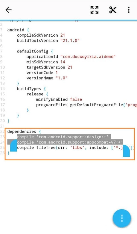 (或者直接打开目录下的build.gradle文件,将下面的代码复制到