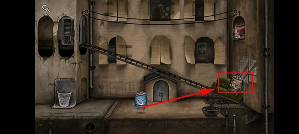 5、随后向左进入下一个场景,把水管连接妥当,同时捡起掉落的盆栽。