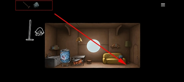 10、当绳子断裂后,会自动把盆栽与老人连接起来。此时,我们只要把盆栽推下去,就能引导老人回到房间。