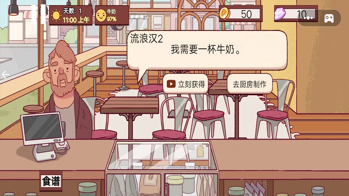 2. 存在一个订单系统,在此系统中,顾客会表达饮品需求。玩家面临两种选择,一是快速提供饮品,二是前往厨房进行制作,而后者考验玩家的时间管理与决策能力。