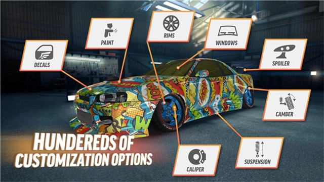 1、完美自定义:选择您的漂移赛车,对其进行自定义设置并开始驾驶。