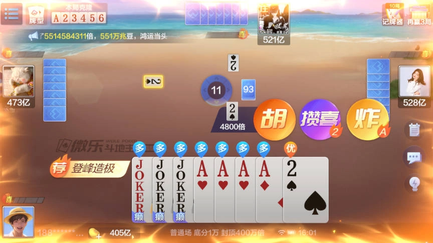 微乐斗地主,堪称一款经典的斗地主游戏。其游戏玩法不仅包含主流的斗地主规则,还汇聚了多种多样的地区特色玩法,像刨幺、掼蛋、够级、挖坑等,一应俱全。此外,它还有独具匠心的独创玩法,比如至尊八喜牌、癞子 + 喜牌等,这些玩法让对局的刺激感翻倍,趣味十足,令人沉浸其中。