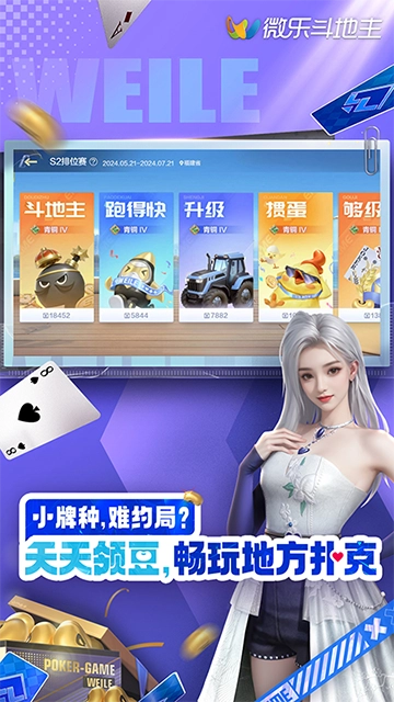 即刻登录,千亿豆免费领!鸿运金、对战奖励等超多精选福利惊喜上线,从此再也不用担心缺豆,打牌嗨到停不歇!