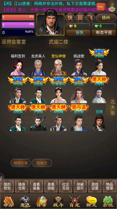 2、重新挑选天赋,在80W经验之前,天赋是能够更改的。前往客栈二楼寻找百晓生。选择“鸿运当头”天赋(具体选择方式见下方)