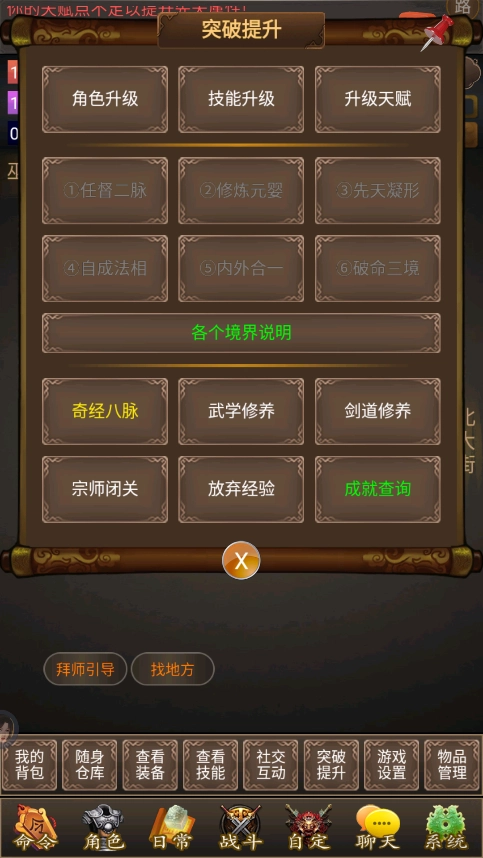 5、具体的拜师流程如下:点击快捷键,进入拜师引导,选择武当。需要注意的是,若正气不足,可使用正气丹;道学心法可通过读书获取。(潜能的作用大致等同于技能点。除心法和基础技能外,多数技能都能通过练习提升,无需消耗潜能。)