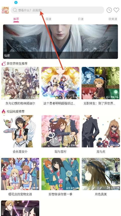 2. 输入动漫名称或作者名称的关键词,接着点击搜索。