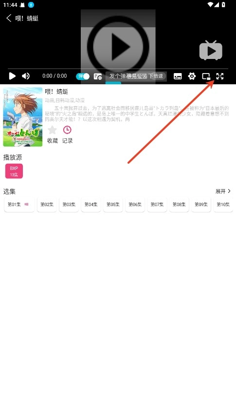 2. 在观看影片的界面中,点击右下角的放大按钮就可以了。
