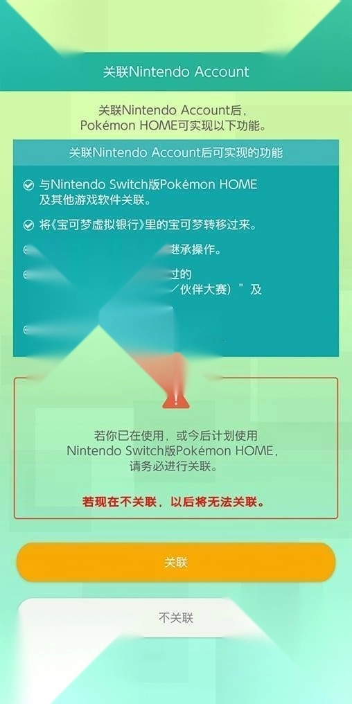 ※智能手机版《Pokémon HOME》后,若不关联Nintendo Account而直接开始使用,将无法在之后关联Nintendo Account。