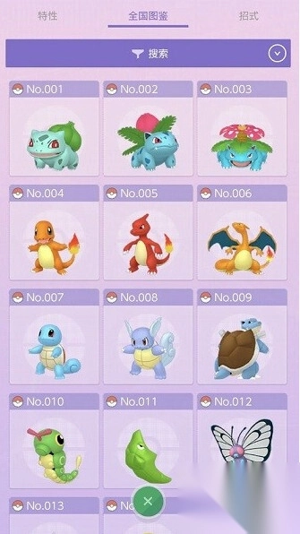 3、全国图鉴内有所有的宝可梦,他们的特性、招式等信息点开就能查看。