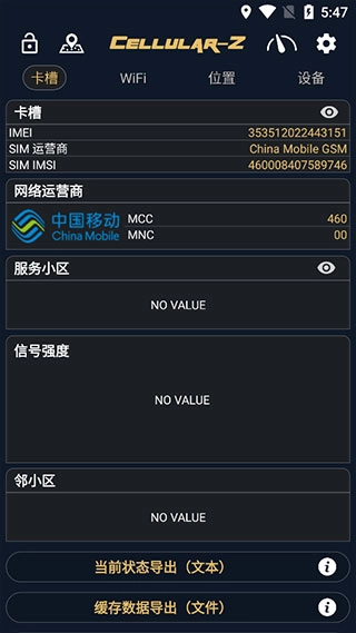 3、借助双卡手机网络,查看各类服务小区信息、SIM卡信息以及服务小区信号质量。