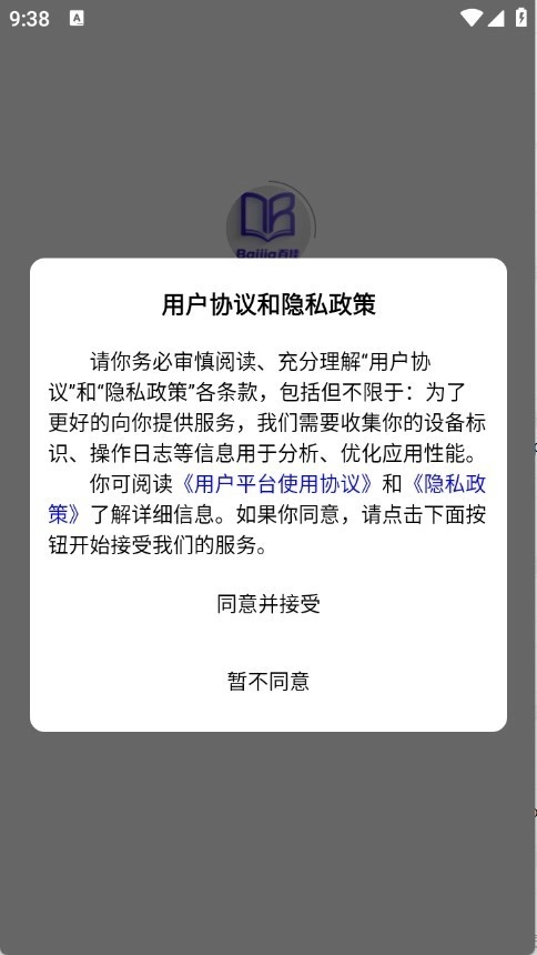 1. 安装正版百佳单词速记,软件打开后,查看并同意隐私政策及用户协议。