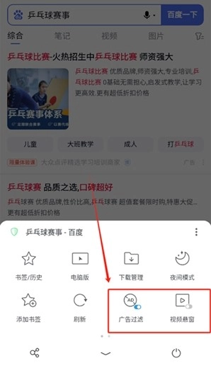 3、点击下方菜单栏可以打开广告过滤和视频悬窗功能