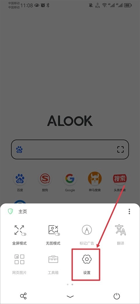 1、在您的设备上打开ALOOK浏览器。该浏览器,即便您没有会员,观看视频的体验也优于在应用程序上观看。